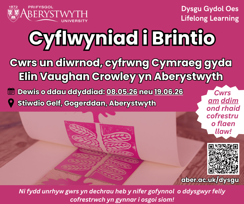 Sesiynau Cynganeddu yn cychwyn ar Ebrill yr 16eg a Chyflwyniad i brintio ar Fai’r 8fed neu Fehefin y 19eg. Mwy o fanylion yn y posteri isod. Y cyntaf i’r felin gaiff falu felly peidiwch â cholli’r cyfle!