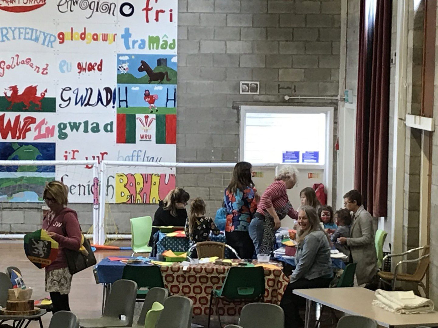 All the children had a chance to give clog dancing a go with Hannah Rowlands, to create battle shields with artists Eleri Jones and Nerys Jones, to enjoy various games with the Urdd, and at lunchtime, we all had a chance to enjoy a delicious pork roll from Oinc Oink.